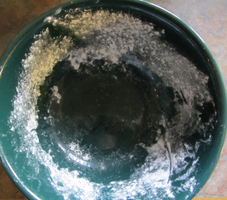 I’m always looking around at how everyone is making Jim Lahey’s No Knead Bread. One day I ran across a blog post where the writer recommended *not* preheating the cooking pot. Her method was to place the the dough on parchment and let it rise in the pot prior to baking. I had to try it out — if it worked then it wouldn’t be necessary to transfer the dough from a towel into a smoking hot pot. The approach would be neater, cleaner, and easier.