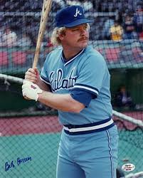 Bob Horner, a guy who could hit the cover off of the ball, and a teammate of Dale Murphy. I remember him hitting three home runs in a game, but I don't remember the porn mustache.
