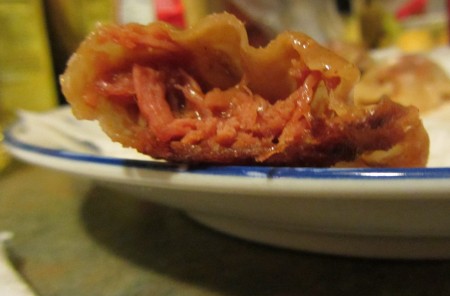The filling was a combination of pulled pork, bbq sauce, soy, worcestershire, lime juice, lemon juice, red wine vinegar, and sambal oelek.