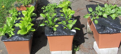 I’ve been doing some reading, and it sounds like the lettuces will need to be moved into partial shade whenever it starts warming up. That should delay the bolting that the lettuce will do at some point. (Which makes the leaves bitter.) Good thing they happened to mostly wind up in one of the boxes with casters.
