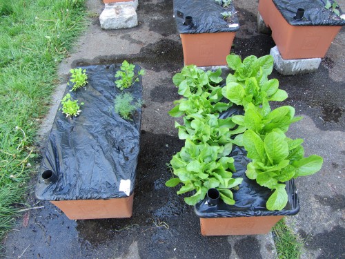 The Seattle Tilth May Edible Plant Sale was yesterday (and today). That brought a lot of new inhabitants for the earthboxes.