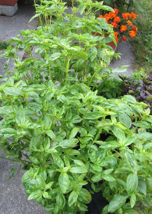 We’ve now harvested almost 30 pounds of assorted veg since early June. Last week was a large amount of basil: