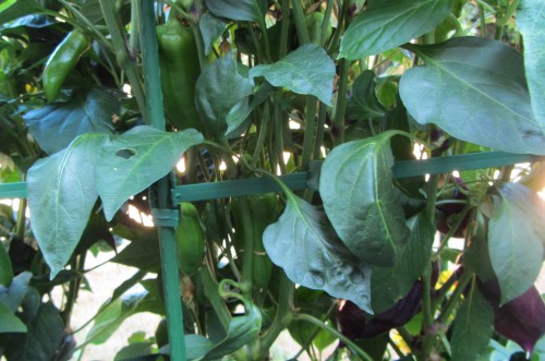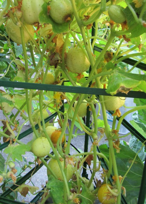 The patty pans don’t seem to be happy. They’re dropping semi-mature fruit and the leaves continue to get more yellow. There are still some fruits growing to full size though. I don’t know what’s up: