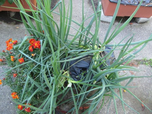 There are not many happy looking plants left. The brussels sprouts are still happy. The lemongrass is still going ballistic. Other than that, though, it’s just Bunch Onions:
