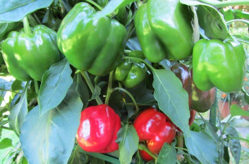 Left column, bottom to top – Gypsy, Tequila, Banana (yellow, was trapped under the shiso), Anaheim.
