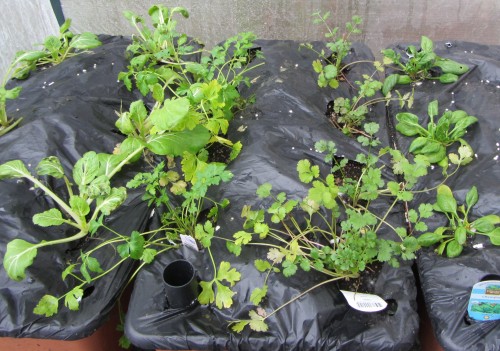 ![New growth in December. [L-R - Pac Choi, Parsley, Cilantro, Spinanch]. The new leaves look happier than the leaves that were on the plants at the time of transplanting.](https://flatbreadgarden.com/wp-content/uploads/2013/12/31be0-122113-plant-house-e1387665861495.jpg?w=1100)