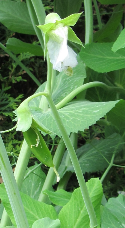 In the front yard, the peas are now doing this: