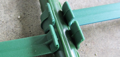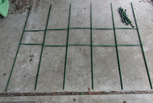 We’d then flip the entire thing over and “close the loop” with the last of the arms. This leaves the open sides of the arms facing out so that if the plants push outwards the arms won’t pop off of the stakes.