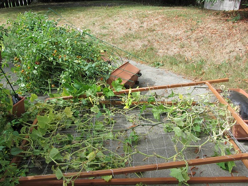 I watched the garden as the wind howled from a strange direction. The zucchini trellis toppled over. It struck the nearest tomato cage, which collapsed into the next cage…: