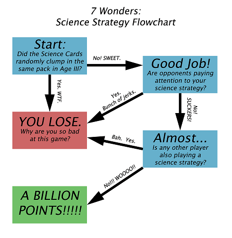 Bonus Flowchart from BoardGameGeek. It’s funny if you’ve played. Focusing science is a high risk/reward strategy:
