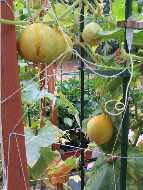 The Lemon cucumbers are still cruising along. The others varieties have all gone pfffft. I may remove the Marketmore vines this week and plant garlic or scallions in that box. The Lemons: