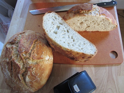 As a bonus, the No Knead breads decided to be cooperative too. I used half AP flour, and half Bread flour. One of the breads split along the slashes, the other was very craggy… rustic!