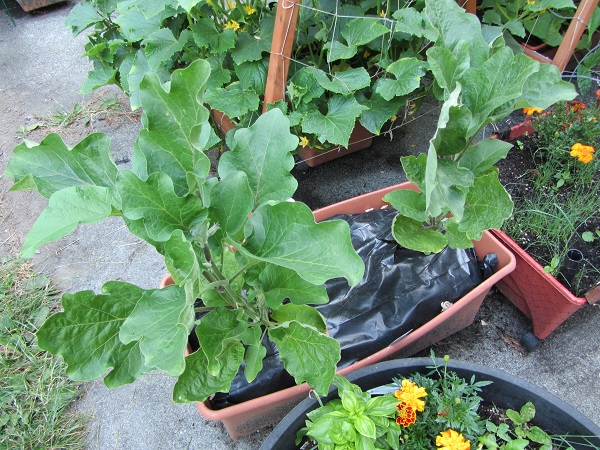 We trying a new thing this year, eggplant. If you look closely you can see a flower on the left plant. I have no idea how well it’s going to do, but I’m hoping we harvest some eggplant for roasting or baba ganoush: