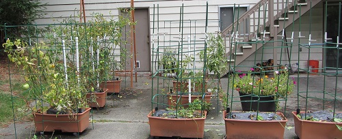 We harvested 280.5 pounds of “summer vegetables” out of the twelve EarthBoxes between June 24 and October 4. That’s 23.4 pounds per EarthBox, or 7.9 pounds per square foot of growing medium.