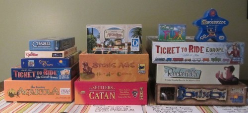 Games That Didn’t Get Played: Agricola, Carcassonne, Catan – Settlers, Infernal Contraption, Power Grid, Stone Age, Ticket to Ride – Europe.