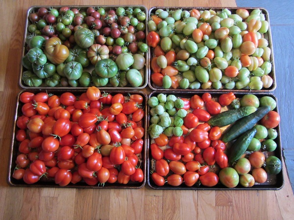 The next week we harvested another sheet tray of ripe Romas. (not pictured)