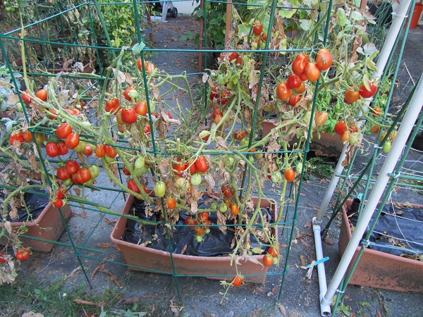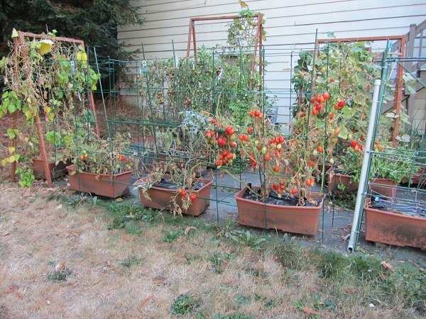 One of the four plants did poorly and dragged down the yield. Either it was a weak plant or it didn’t get enough sun on the north/shady end of the stack. Still, almost 50 pounds of Romas makes a lot of sauce.