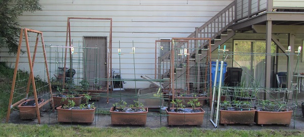 Our patio container garden had a “solid” year all-around: 173.1 pounds of produce from 9 EarthBoxes. Which comes to about 6 pounds per square foot of container space. The trees in and around the garden continue to expand, at some point soon we may need to go to fewer boxes and smaller (determinate) plants.