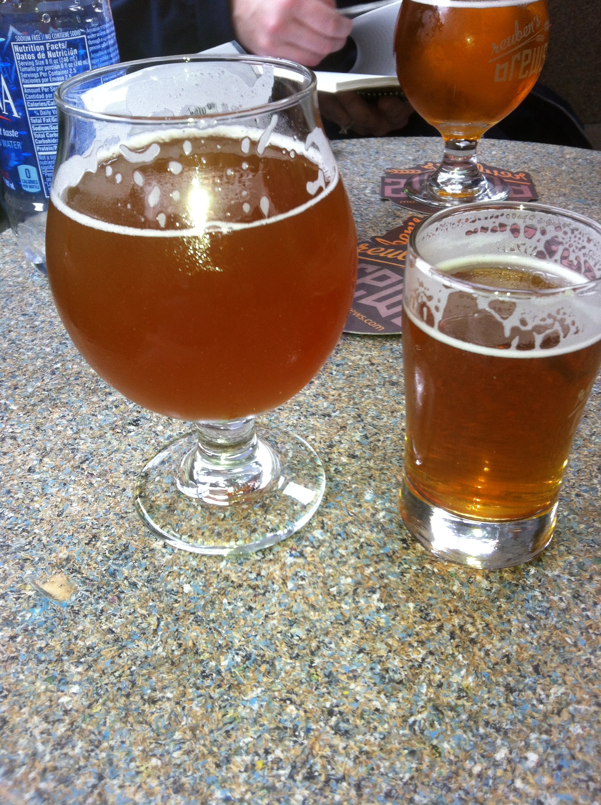 The beer is hazy brown in color, almost amber. Lots of malt on the nose with citrus hidden in the background – I was expecting a more hop forward aroma, but it is subdued by the roast from the malt and that is not a bad thing. This beer goes through multiple stages on the taste buds: It starts off with a slightly sweet malt flavor, moving briefly to some light citrus notes, followed by a dry toasted rye flavor. The finish is long with pleasantly bitter citrus peel, more roasted malt and hints of dark chocolate and something that I couldn’t quite place (probably the rye) and there is a slightly tannic feel on the finish. Overall the rye flavor is much more pronounced in this beer as it warms. Despite the high IBU and alcohol, this beer doesn’t come across as a hop bomb and the alcohol is warming component rather than something that smacks you in the head.
