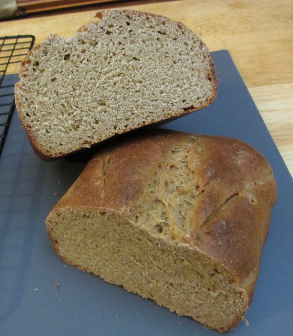 1/3 of the flour by weight is the Rogue de Bordeaux. This seems to be a good ratio of whole wheat to regular bread flour. The bread has good structure. The Rogue de Bordeaux adds a lot of the flavor and cinnamon and baking spices. One neat thing is that it highlights different flavors in the sandwich depending upon the ingredients.